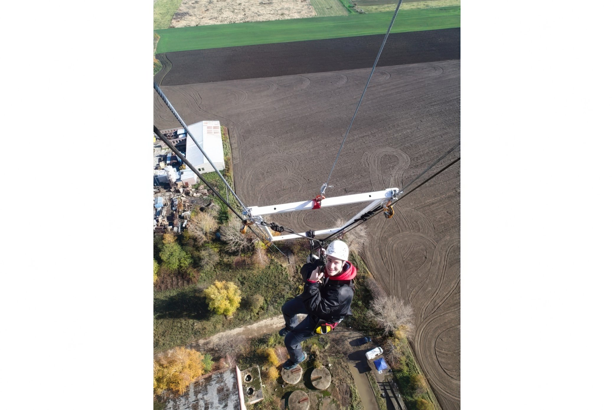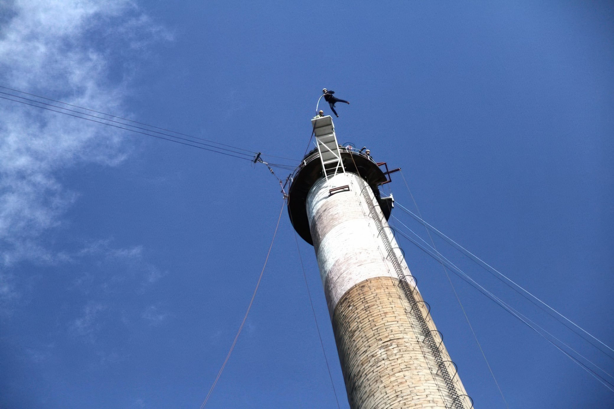 Váš zážitok sa začína jednoduchou registráciou a krátkym oboznámením s priebehom skoku — vyplníte a podpíšete reverz, dostanete postroj a výťah vás vyvezie až na komín. Tam vám inštruktori poskytnú posledné pokyny, spolu absolvujete krátke dychové cvičenie… a potom už nasleduje odpočítanie: tri, dva, jeden — jump!