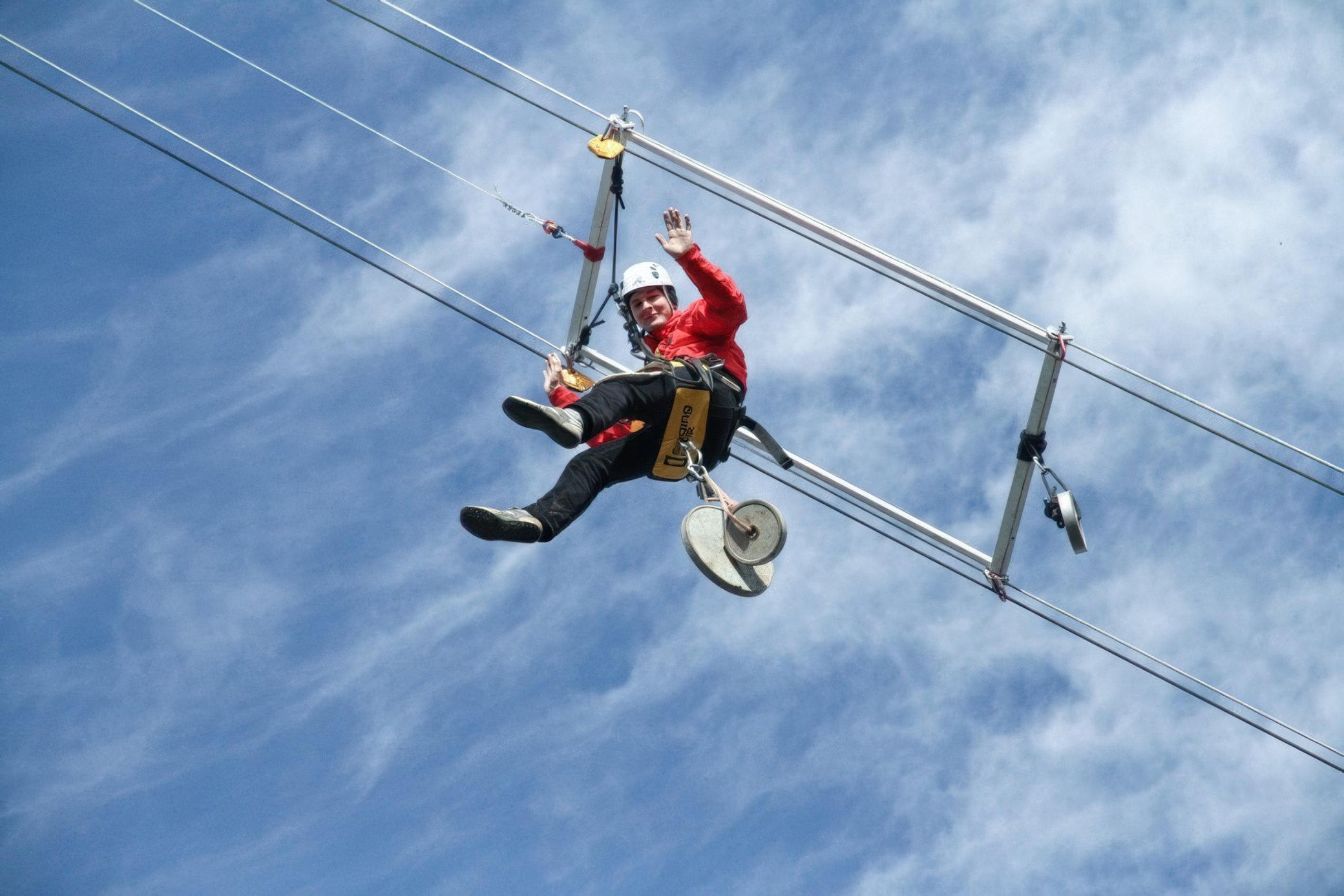 Zoskok prebieha v špeciálnom lanovom systéme. Počas 3,8 sekundy voľného pádu budete mať dokonca priestor aj na akrobatické kúsky, ak budete chcieť. Brzdenie prebieha pomocou systému lán a kladiek – sila sa postupne mení z vertikálnej na oblúkovitú, vďaka čomu je preťaženie výrazne nižšie než pri klasickom bungee z mosta. Výsledkom je plynulé a komfortné spomalenie.V cene zážitku je zahrnuté:
