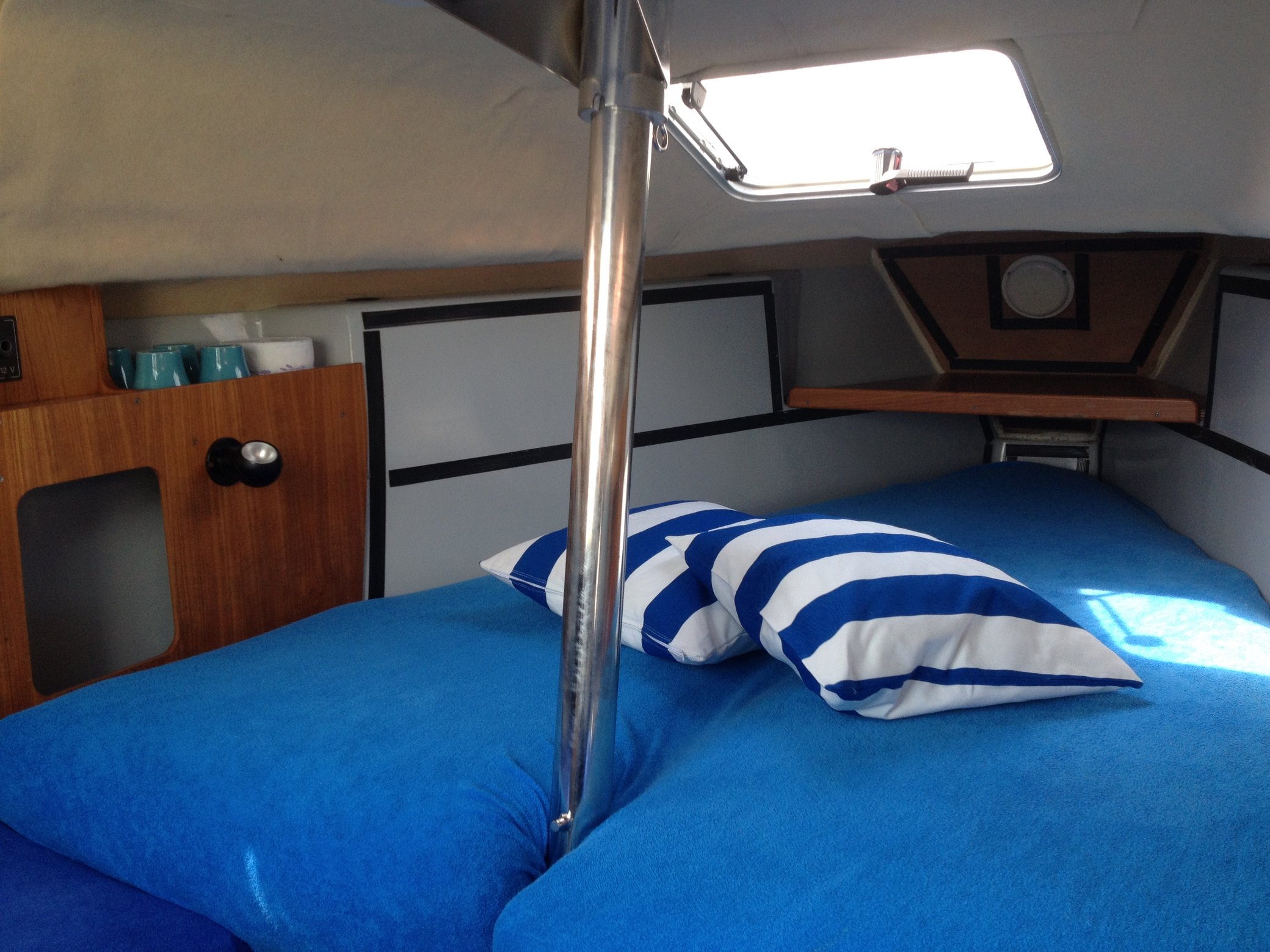 Plachty majú priestranný kokpit, veľkú spojovaciu kabínu na spanie až pre 4 osoby, chemické WC a úložné priestory v kokpite. Na palube sa nachádza zariadenie na varenie a stravovanie. Chladnička/chladiaci box nie je k dispozícii.