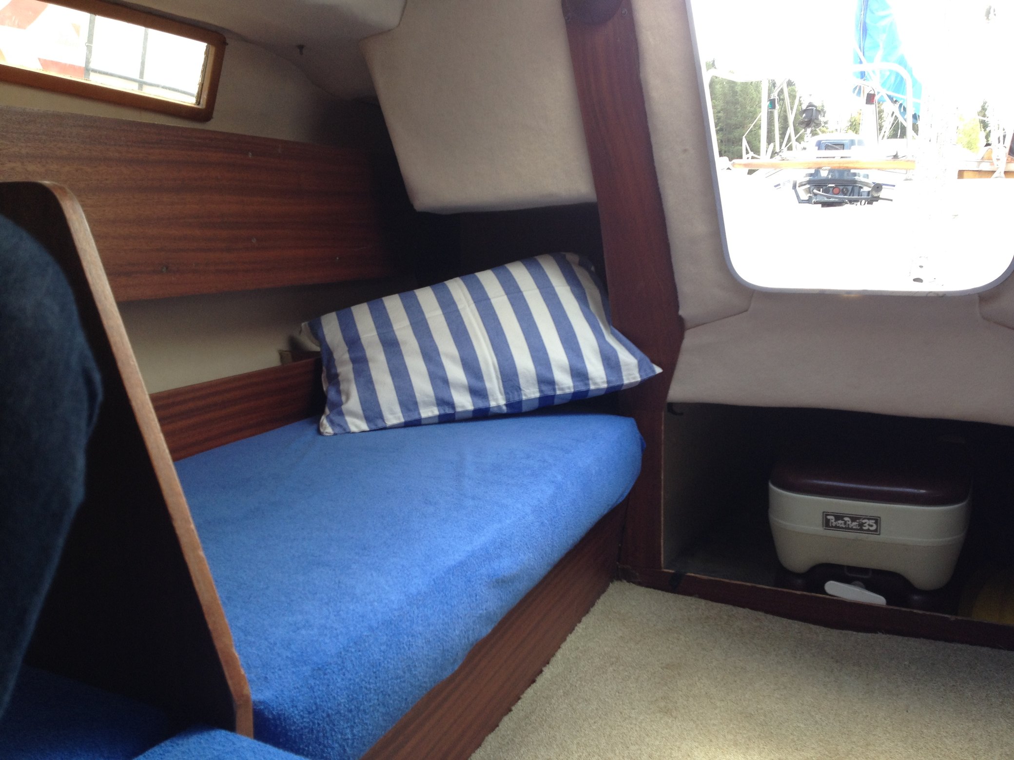 - max. 5 litrov paliva (plachetnica má prívesný motor, ktorý budete používať hlavne na vychádzanie a zachytávanie prístavu, takže s palivom si vystačíte)