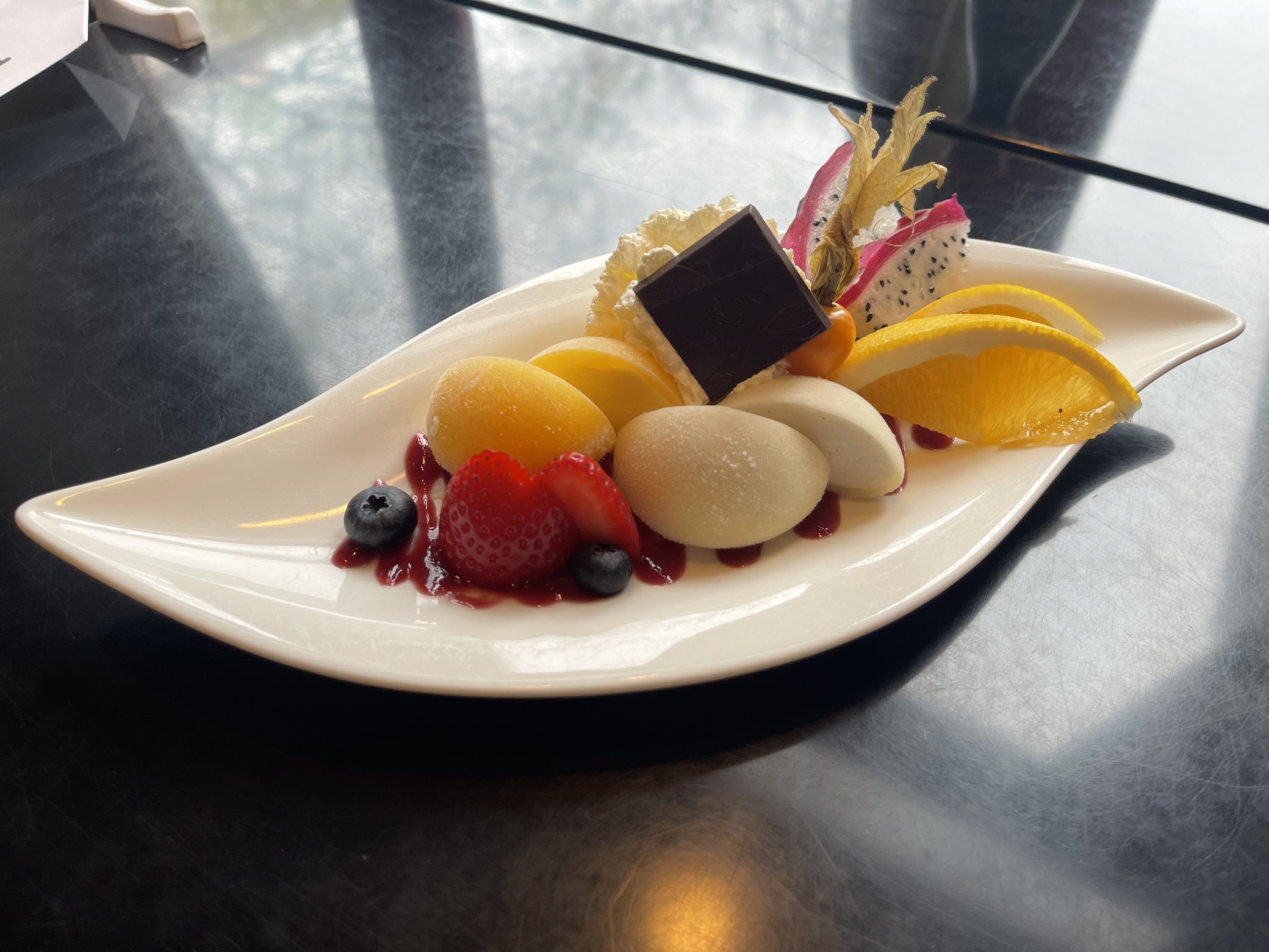 Degustačné menu je zakaždým trochu iné, v závislosti od čerstvých surovín, ktoré sú v danom čase k dispozícii. Pre predstavu však môže vyzerať takto: