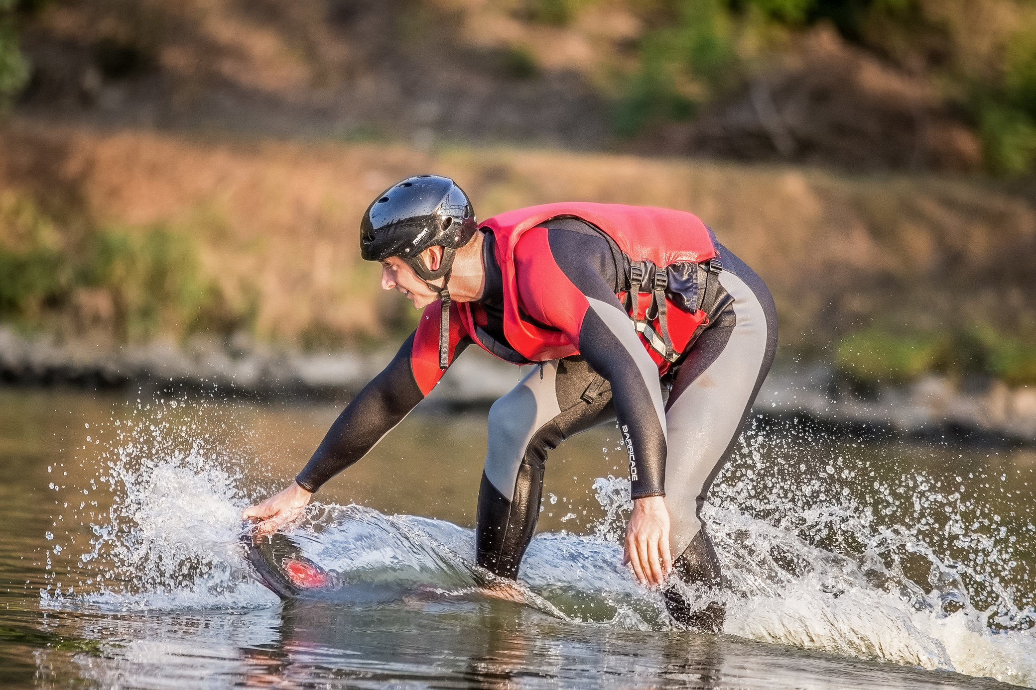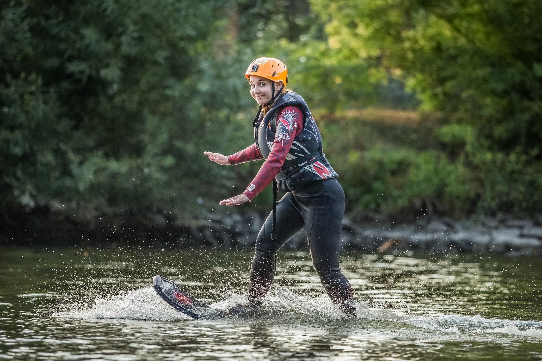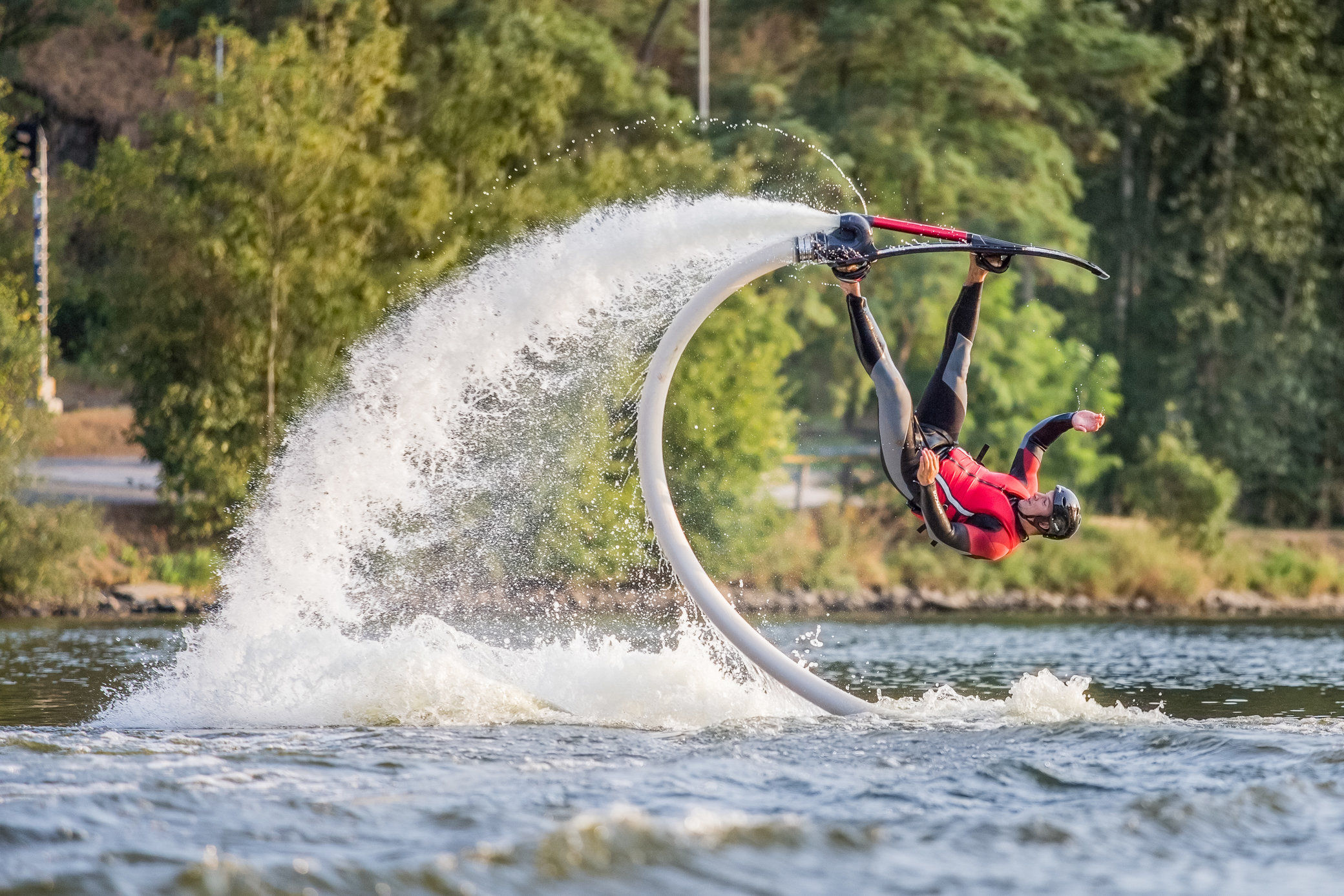Potom sa oblečiete do neoprénu, plávajúcej vesty a prilby - a inštruktor vám odovzdá hoverboard. S ním skočíte do vody, zasuniete nohy do viazaní (pút) pod vodou, chytíte dosku za špičku a počkáte na silu prúdu. Prúd vody vás začne vytláčať z vody a vy sa snažíte udržať rovnováhu... a letieť. Je to celkom ako wakeboarding, ak vyštartujete z vody. A po niekoľkých pokusoch ste zrazu nad vodou a letíte... a zábava s hoverboardingom sa môže začať.
