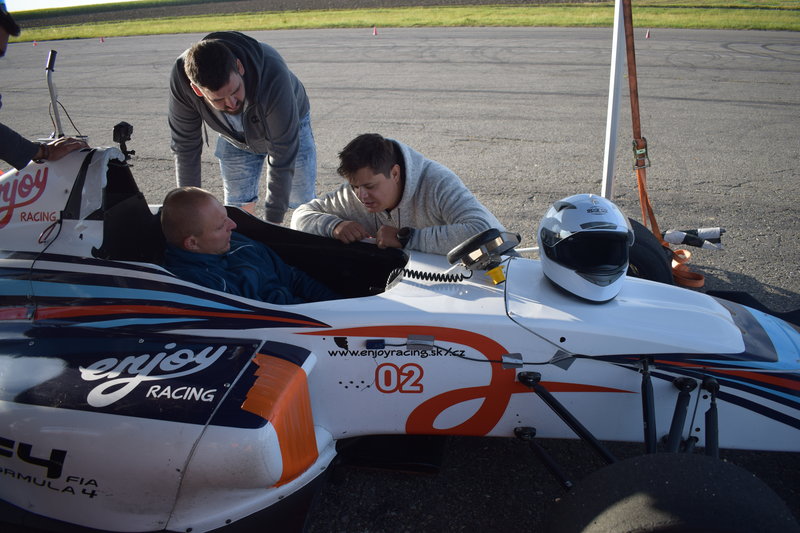 Možnost zkušební jízdy a seznámení se s tratí v doprovodu instruktora před vlastní jízdou a samozřejmě jízda ve formuli 4 samotná.