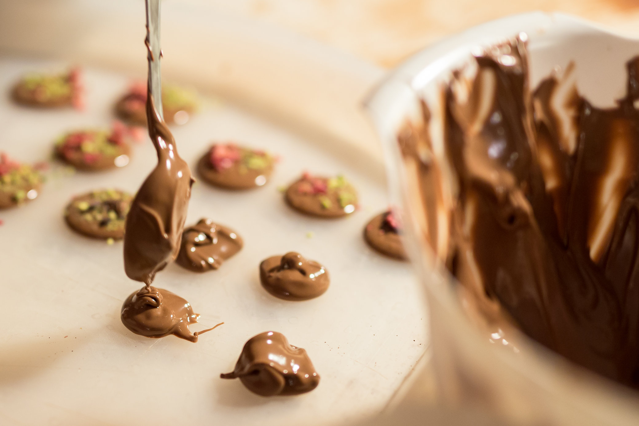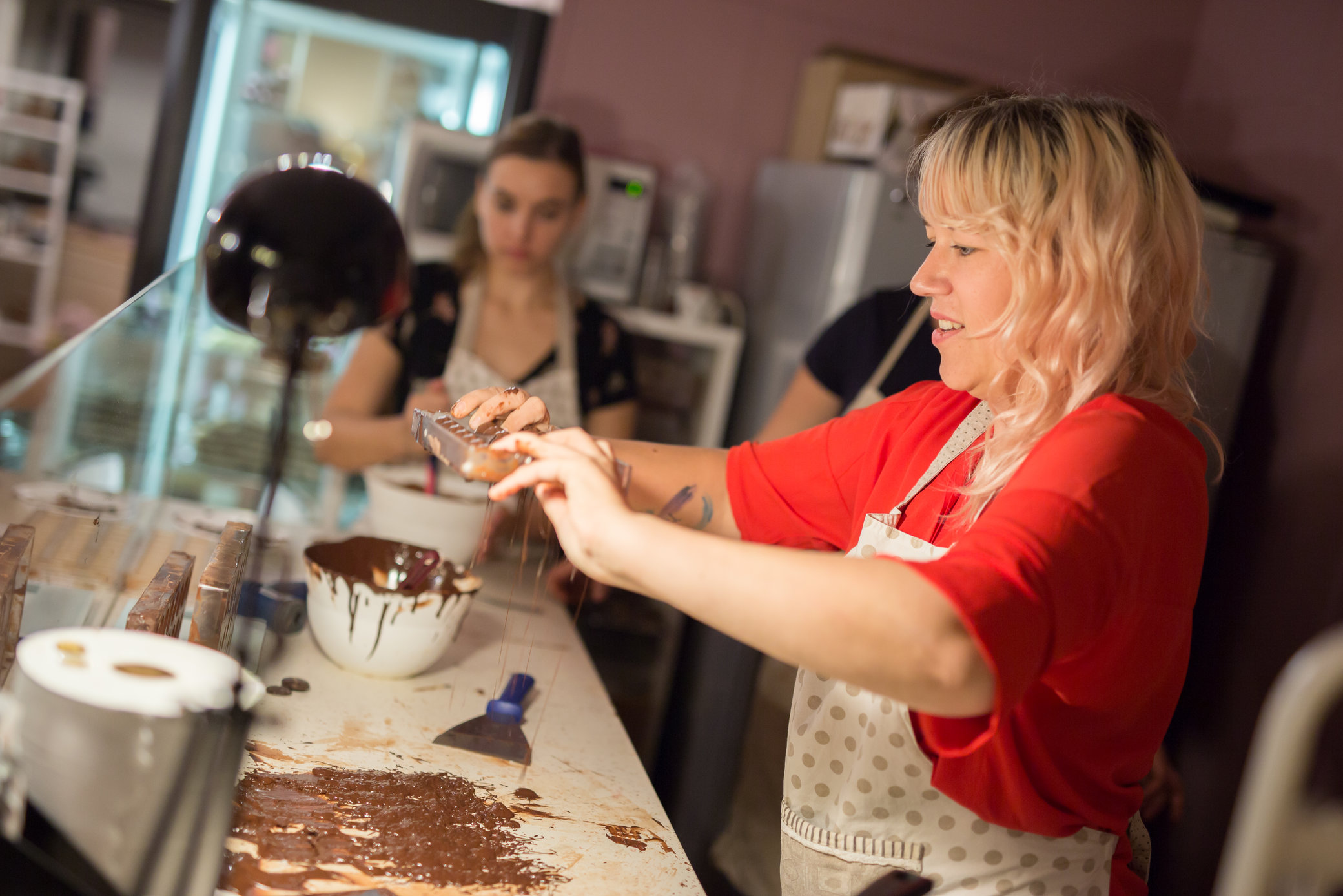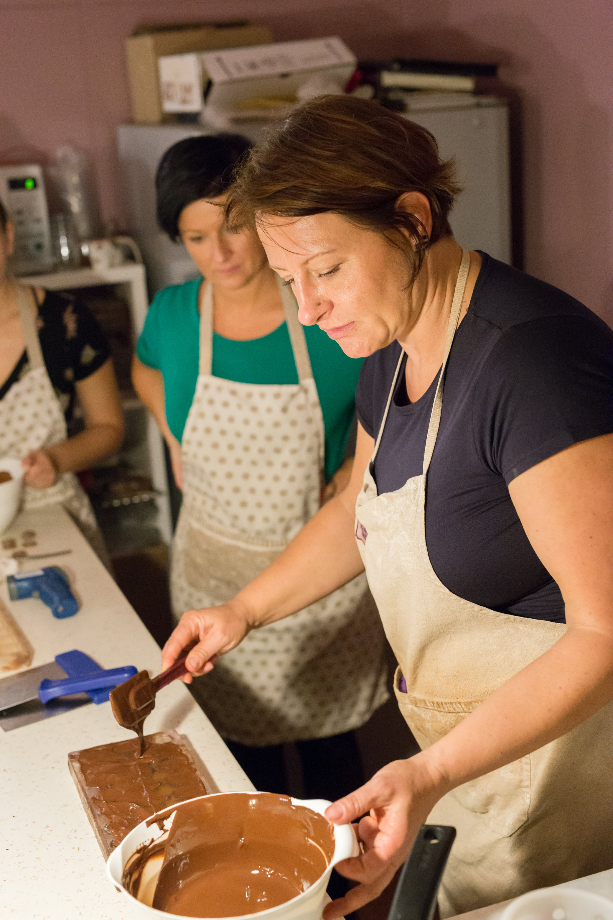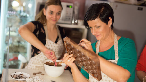 Kurz sa koná v malebnej cukrárni, kde sa vám bude venovať skúsená čokolatiérka, ktorá vám predstaví svoje sladké remeslo. Aby vaše chuťové poháriky netrpeli, postaví pred vás misky na ochutnávku čokolády. Na konci kurzu budú misky prázdne - na to sa môžete spoľahnúť. ;) Čokolatiérka začne s rozpúšťaním čokolády a naučí vás, ako ju temperovať. Keď má čokoláda správnu teplotu, naleje sa do formičiek na pralinky, ktoré sa potom nechajú vychladnúť. Potom prejdete k príprave samotnej náplne, kde môžete popustiť uzdu vlastnej fantázii alebo si nechať poradiť. Potom naplníte formičky na pralinky a pustíte sa do ďalšej časti kurzu. Výroba tabuľky čokolády. Počas kurzu sa dozviete mnoho zaujímavostí o histórii čokolády a samotnom remesle - ako ideálne pracovať s čokoládou, čomu sa pri práci s ňou vyhnúť a aká čokoláda je vhodná na aké dezerty. :)