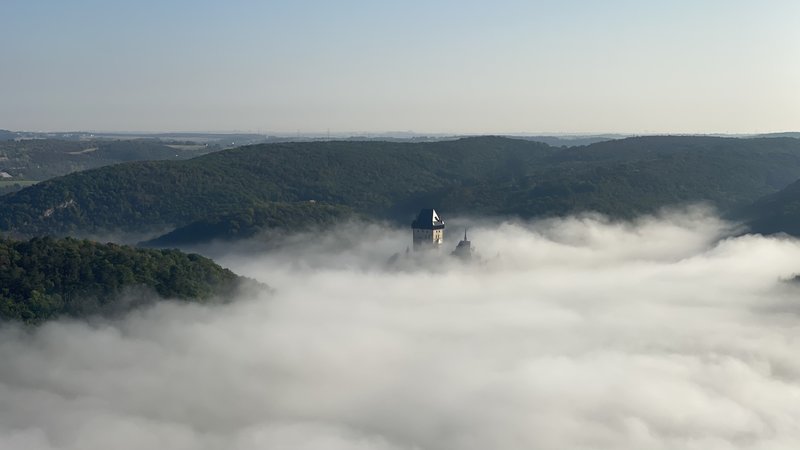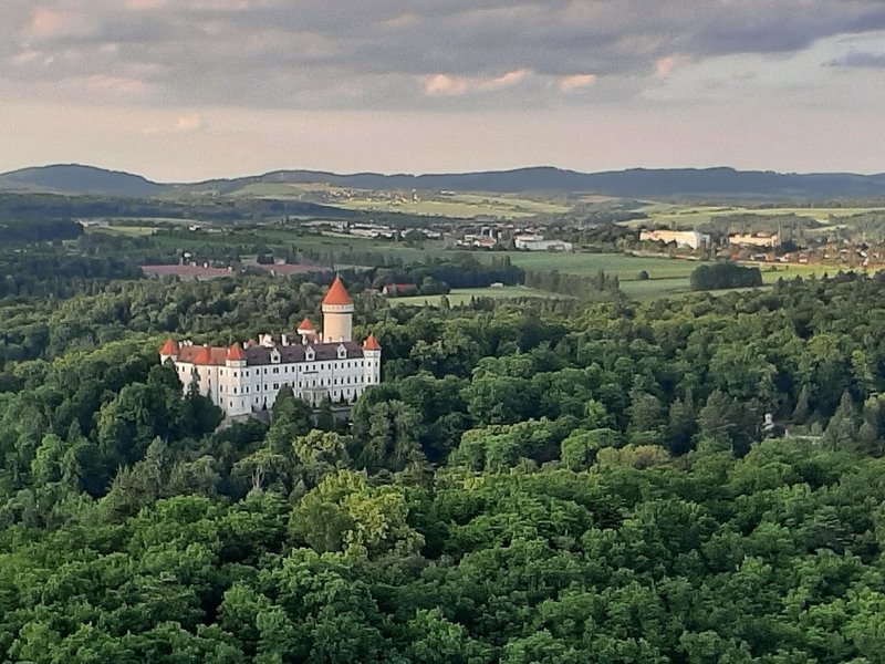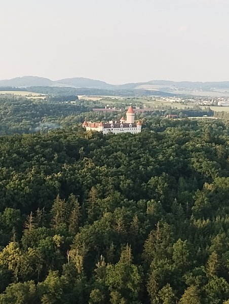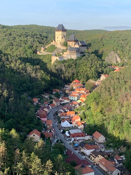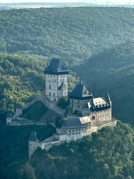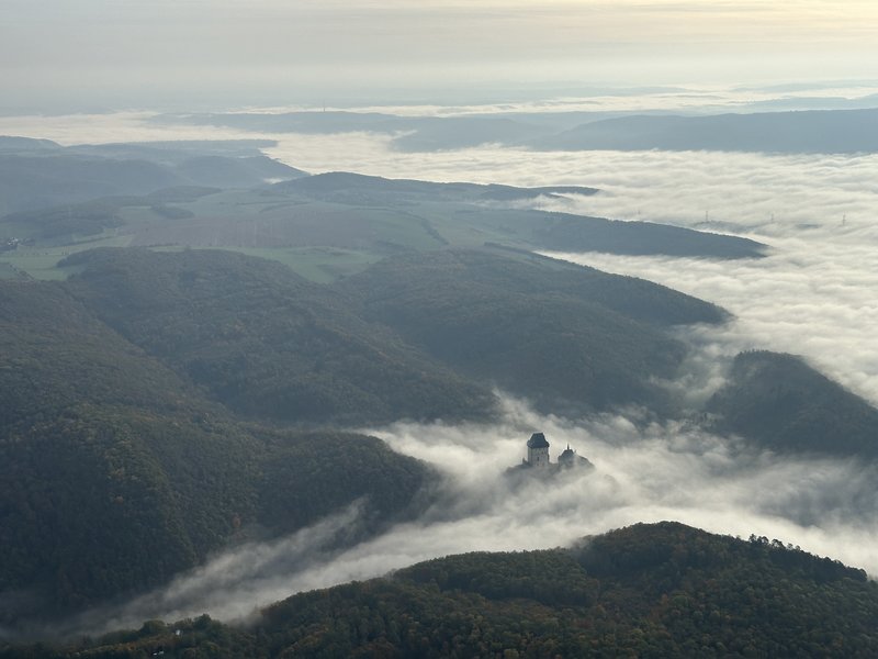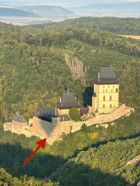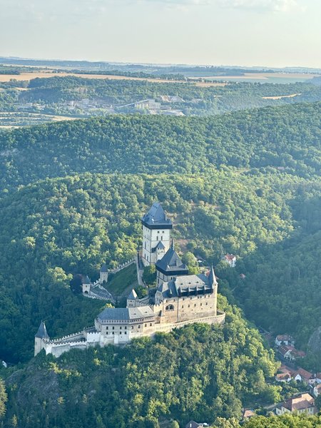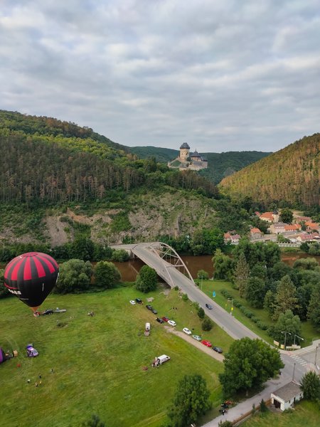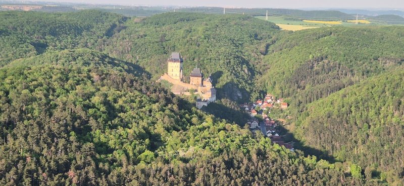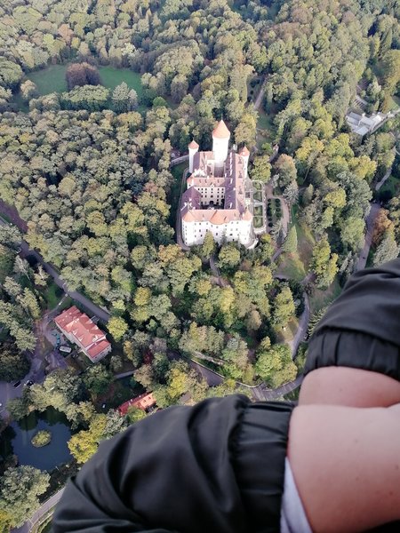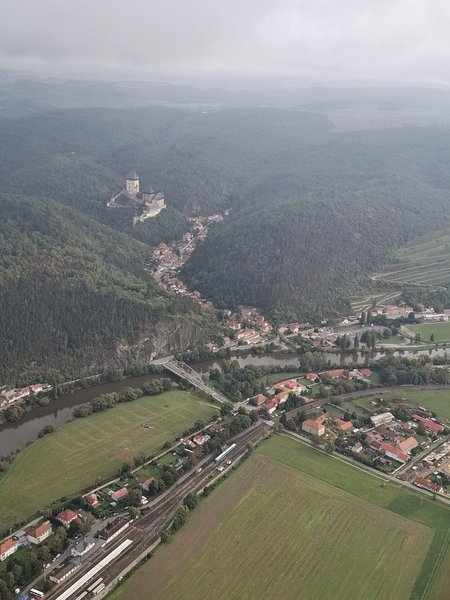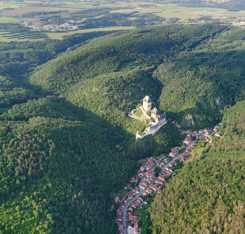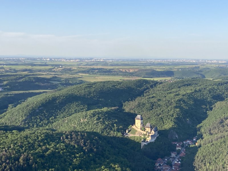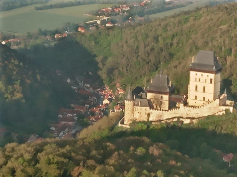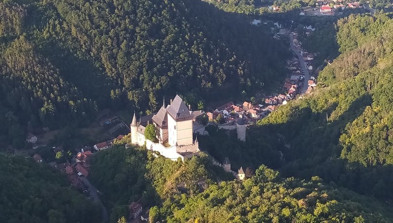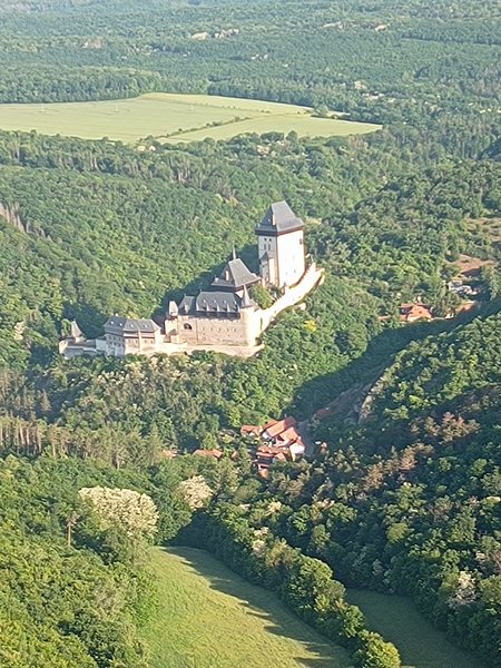 Prostředí Karlštejnu, samotný let, který byl dlouhý a klidný