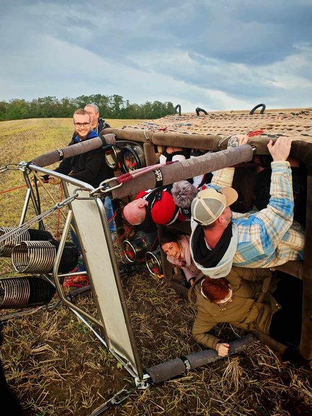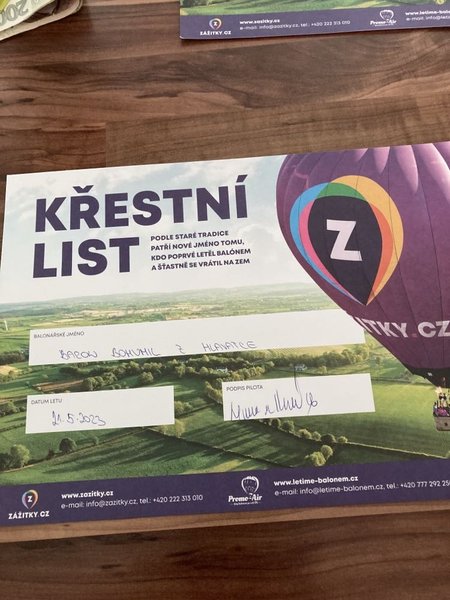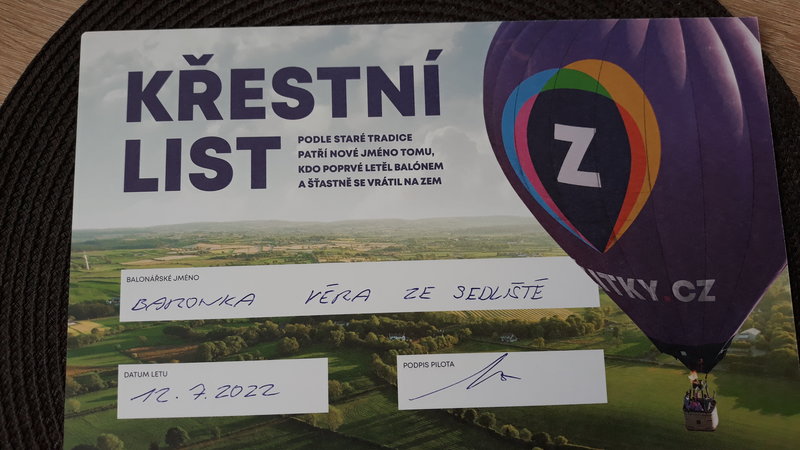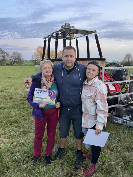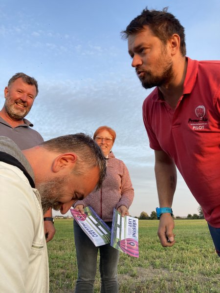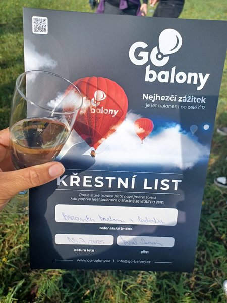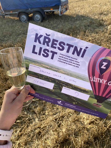 Všechno bylo perfektní, jak samotný let včetně naprosto pohodového přistání, tak i nečekaný zážitek po dosednutí, kdy byli všichni "pasováni" na hrabata a hraběnky s udělením balonářského titulu:) Opravdu zážitek od začátku do konce!