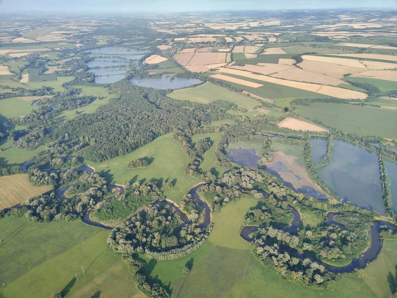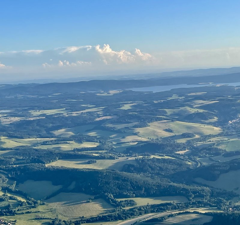 Úžasný pohled na krajinu. Měli jsme ideální podmínky - slunce, teplo, viditelnost, báječného pilota a krásné povídání při křtu účastníků.