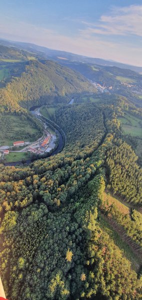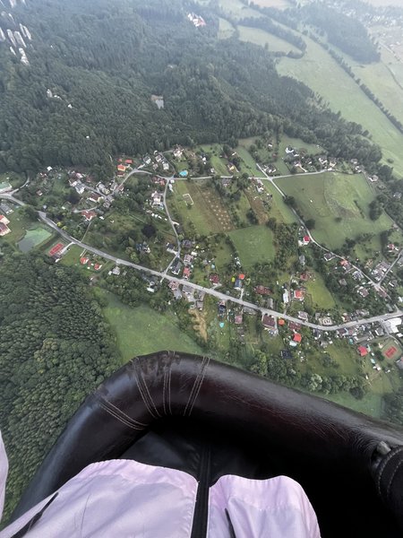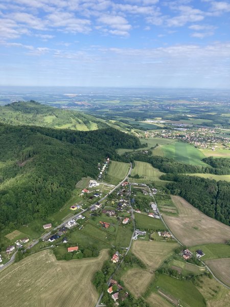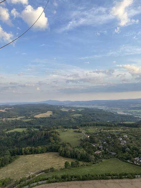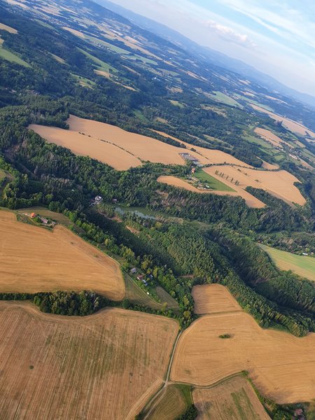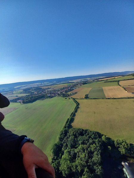nádherný pohled na krajinu úplně jiné vnímání než při vyhlídkovém letu v letadle. a super bylo přistání :)