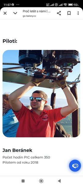 Ten let byl krásný. Mladý pilot nám vše pěkně vysvětlil, cítili jsme se v bezpečí. Mladý pilot profesionální i v horších chvílích. Nevadilo nám ani pomáhat s chystáním balónu, byl to vesměs pozitivní zážitek.