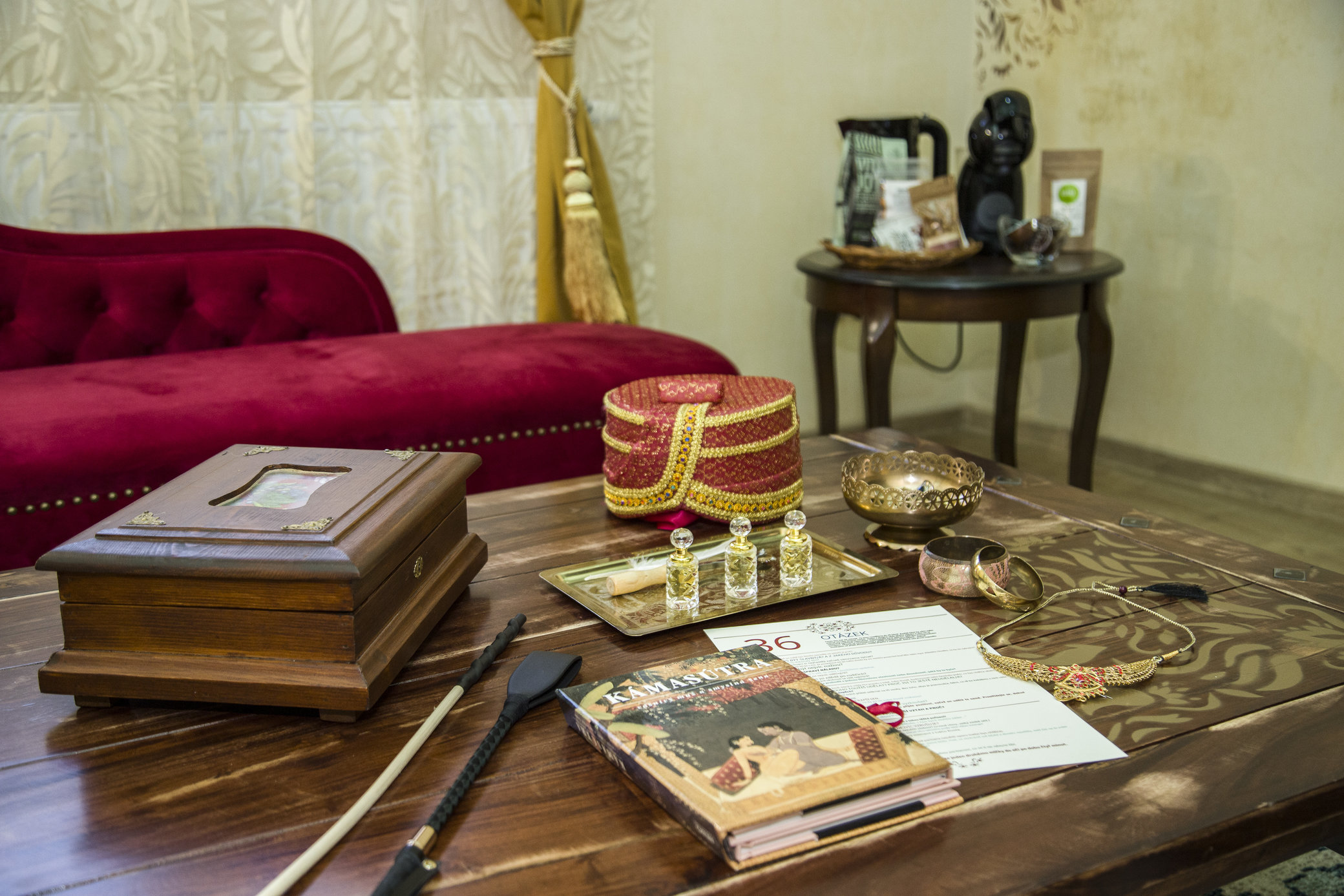 Po príchode vás čaká samostatný check-in. Oddajte sa súkromiu a romantickému času strávenému vo dvojici. Zabývajte sa – je len na vás, kedy zapnete tablet a ponoríte sa do dráždivého indického príbehu zakázanej lásky plného výziev, ktorý vytvorí jedinečnú intímnu atmosféru. Vyskúšate si niekoľko tradičných indických aktivít.
