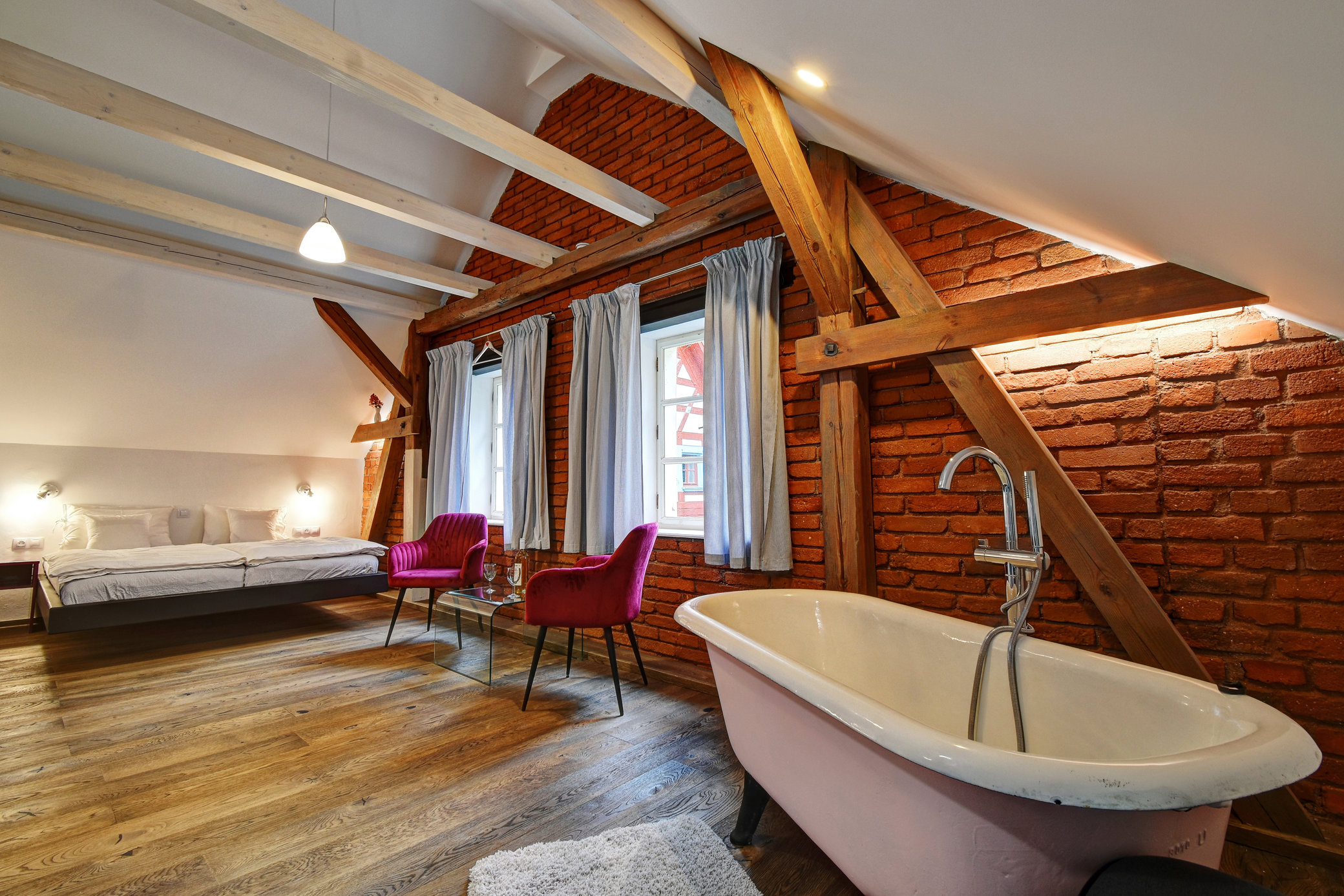 Po príchode na farmu Salajna budete ubytovaní v úžasnej izbe (dokonca s voľne stojacou vaňou), ktorá sa nachádza v pôvodnej stajni. Počas pobytu si môžete pozrieť malú výstavu historických remesiel a poľnohospodárskej techniky, ktorú majú v novopostavenej kolárni (replika pôvodnej). Neváhajte a vychutnajte si drink pre dvoch na prízemí kolkárne, pretože tu majú pôvabné posedenie. Druhý nápoj si dajte napríklad v budove stajne, kde sú nebezpečne pohodlné kreslá priamo pri krbe. A so zvyškom fľaše odporúčame obehnúť záhradu, kde je niekoľko miest na posedenie a vychutnávanie si krásnej zelene.