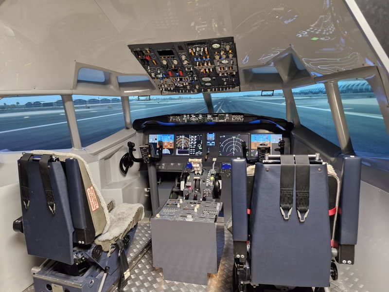 Ovládacie prvky, rozmery a systémy simulátora sú rovnaké ako v skutočnom lietadle. Simulátor zároveň ponúka realistický pohľad z kokpitu pomocou širokouhlej polkruhovej obrazovky so zorným poľom 220°. Obraz okolia lietadla sa na obrazovku prenáša pomocou projektorov s rozlíšením FullHD.
