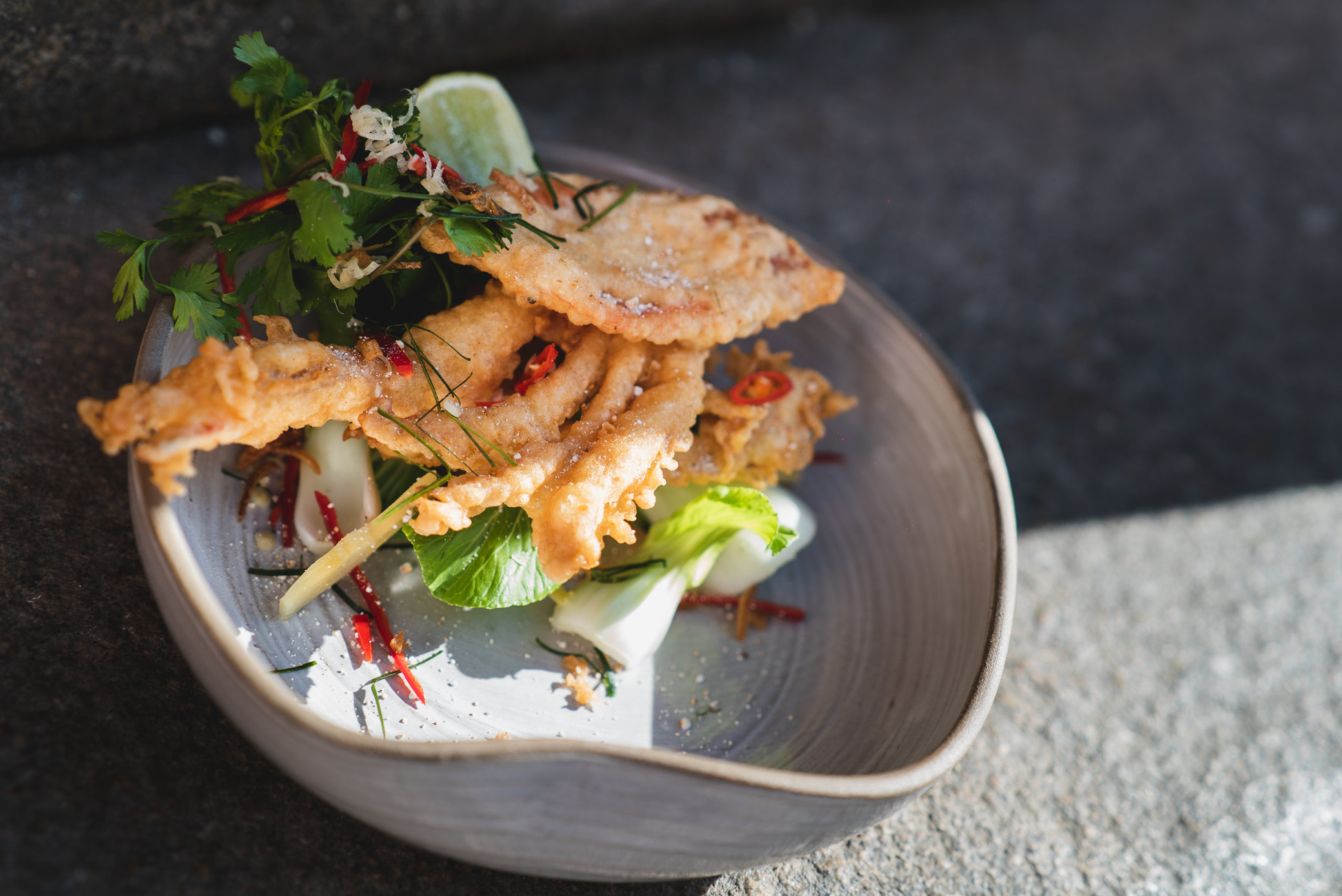 - Pad Pum Po - chrumkavý krab s mäkkou škrupinou, kokosová omáčka so žltým chilli, galangal, kurkuma, citrónová tráva, limetkové listy, jazmínová ryža