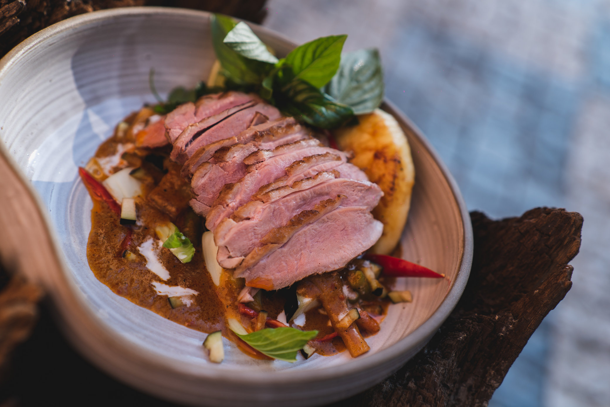 - Kokošové hovädzie rebierka - 5 hodín pečené hovädzie rebierka, mladá kokosová voda, ustricová omáčka, kardamón, limetkové listy, citrónová tráva, kokosové mlieko, šalotka, thajské bylinky, jazmínová ryža