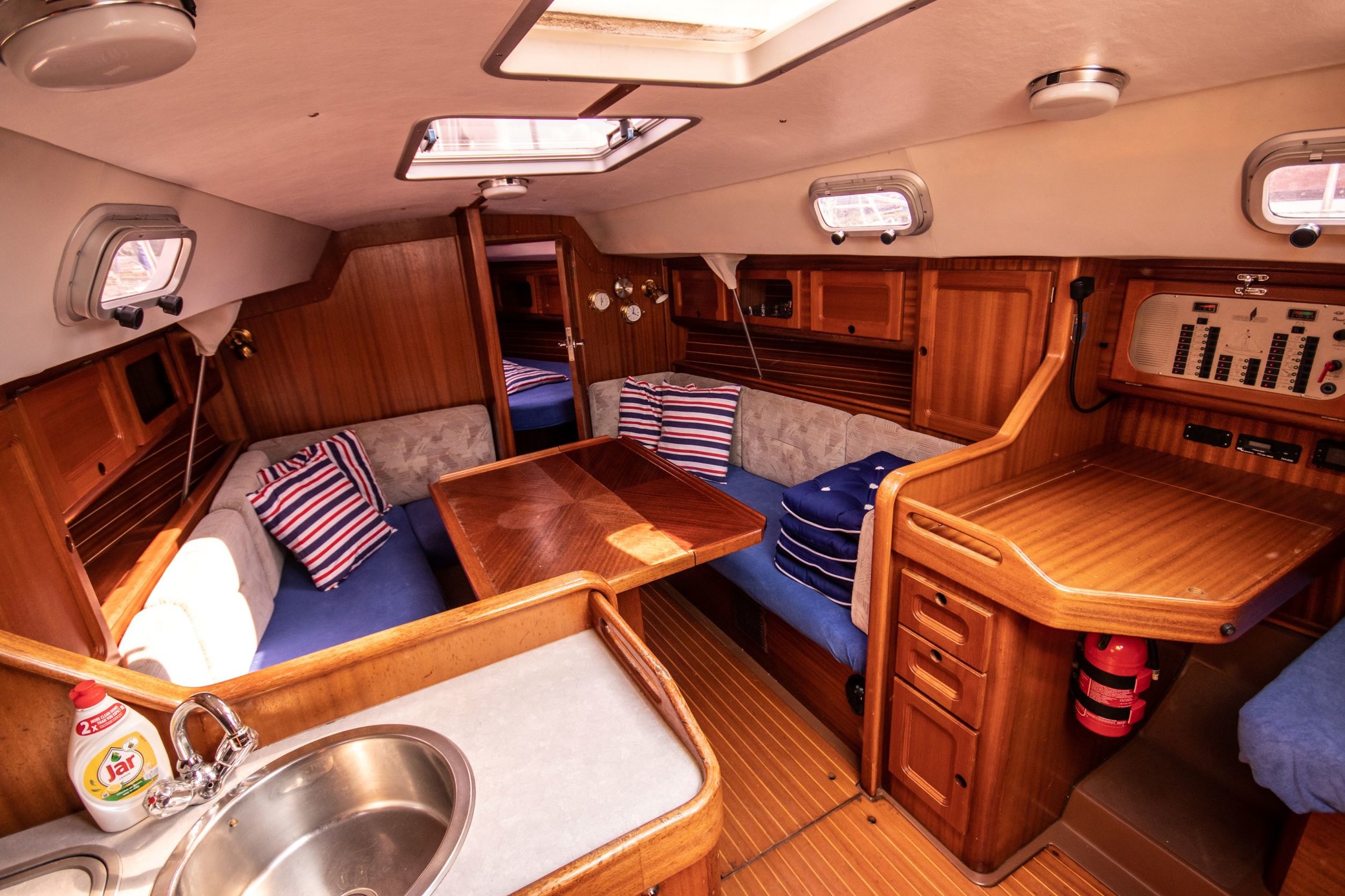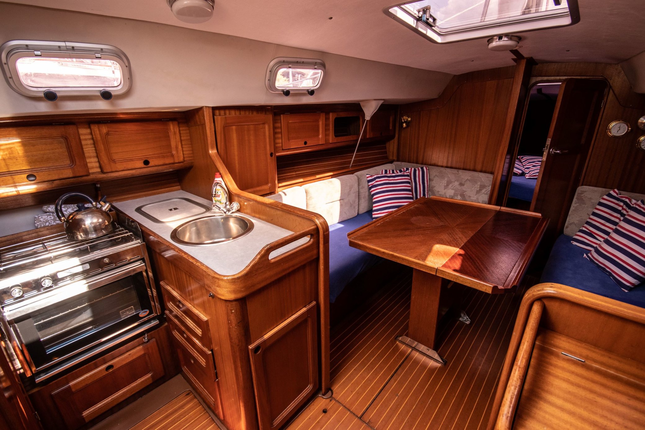 - pohonné hmoty (plachetnica má prívesný motor, ktorý budete používať hlavne na vychádzanie a zachytávanie prístavu, takže si vystačíte s palivom)